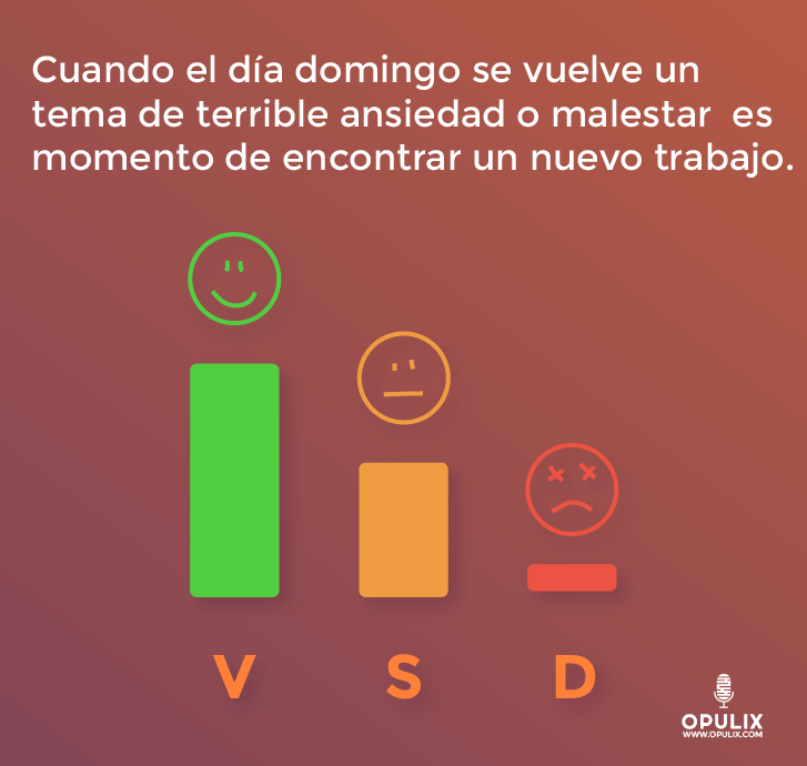 Cuando el día domingo se vuelve un tema de terrible ansiedad o malestar si quiera pensar en tu trabajo o en que debes ir a ese lugar al siguiente día, te acuestas en la noche y empiezan a subirte los niveles de estrés hasta producir en muchos casos insomnio.
